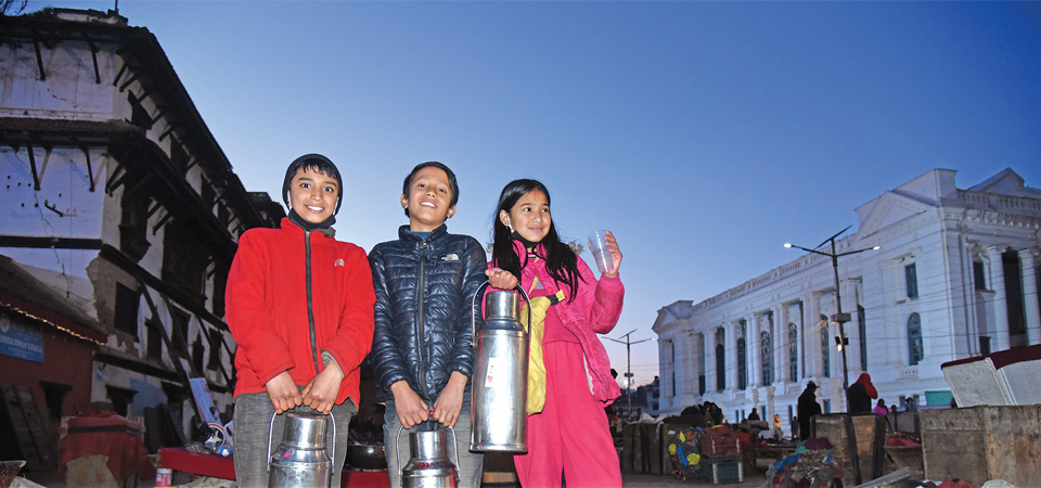 At every corner of this heritage site, we can see tea hawkers carrying tea thermos. Most of them carry both milk and black tea ready to be served in paper cups. Seeking their customers, they keep moving round the place. Some of them even keep asking the passers-by if they want a cup of tea. It is a story that Basantapur witnesses every day.