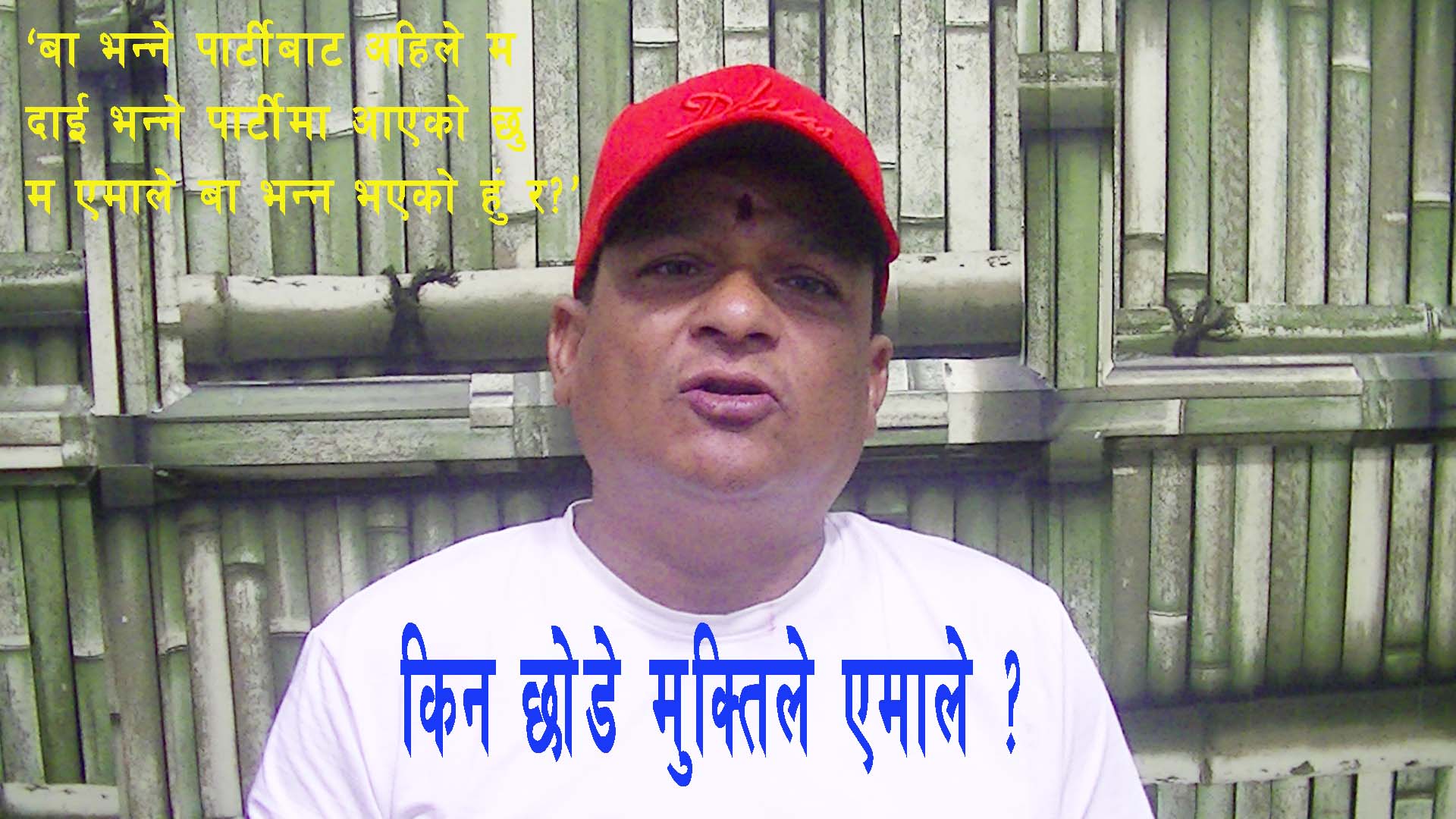 ‘ के म बा भन्नका लागि एमाले भएको हुँँ ? बा त मेरै घरमाछन् नि, म काँग्रेसमा कुनै पदका लागि गएको होइन, मुक्ति चौकमा प्रतिगमन भयो भनेर आफ्नै अध्यक्षको बिरुद्ध जाने यही मुक्ति पौडेल हो’ जय नेपाल भन्न अभ्यास पनि त गर्दै हुनुहुन्छ होला नि है ?आफ्नो पुरानो घरको संझना बेलाबेला आउँदैन ?— पत्रकार मुक्ति पौडेल(नव प्रवेशी)