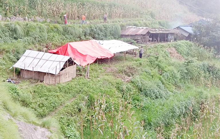 धादिङ । उत्तरी धादिङको गंगाजमुना गाउँपालिका–१ रिगाउँबासी घर छोडेको एक साता बितिसक्दा पनि त्रिपालको भरमा बस्न बाध्य छन् ।