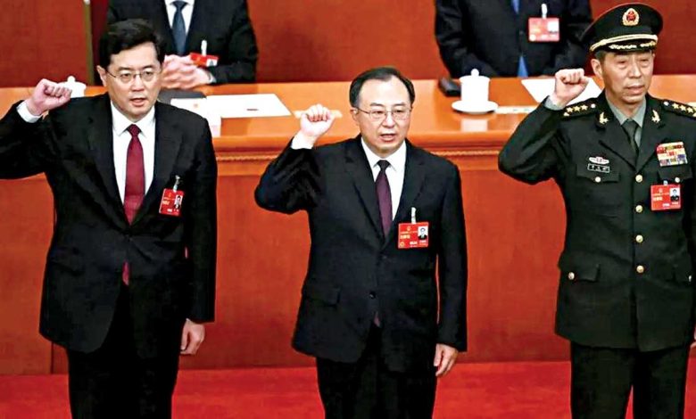 यसअघि पदमुक्त गरिएका चिनियाँ विदेशमन्त्री छिन काङ (बायाँ) र अहिले सार्वजनिक रूपमा नदेखिएका रक्षामन्त्री ली साङ् फु (दायाँ) यसअघि दुवैलाई राष्ट्रपति सी जिनपिङको समर्थकका रूपमा हेरिएको थियो। तस्बिर : बीबीसी