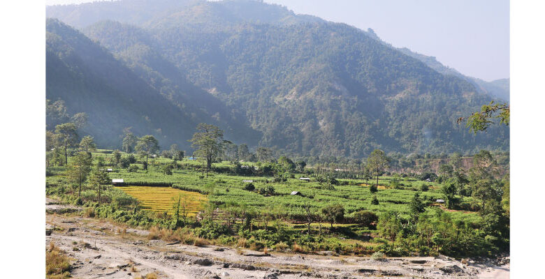 A whole mountain in Sangurigadhi Rural Municipality is covered with sugarcane plants.