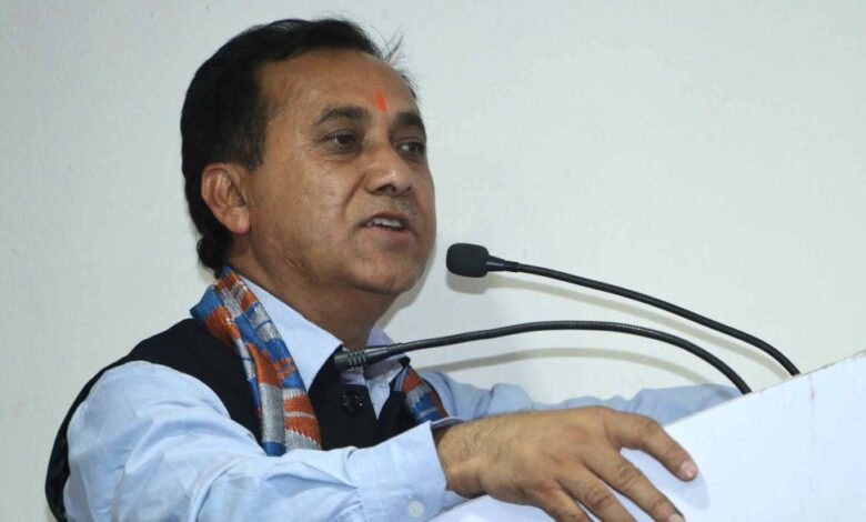 कार्यक्रममा बोल्दै नेपाली कांग्रेसका महामन्त्री विश्वप्रकाश शर्मा । तस्बिर : लीलाधर वली
