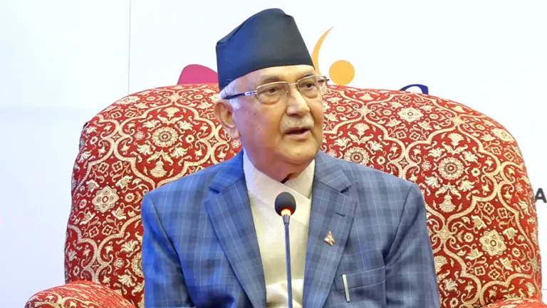 ‘एक जनाले भनेका थिए– कोसँग मेरो गर्धन जोडिएको छ, घाँटी जोडिएको छ। यिनीहरूको सबैको घाँटी एकै ठाउँमा जोडिएको छ। यिनीहरूको घाँटीमात्रै होइन सिंगै शरीर जोडिएको छ,’ ओलीले भने, ‘अंग्रेजीमा भनाइ छ– बर्ड्स अफ् द सेम फिगर फ्लाइ टुगेदर। यी एकै वंश, एकै नश्लका हुन्। र यी भ्रष्टाचारी वंशका हुन्। यी कमिसनतन्त्रीय वंशका हुन्। यिनको गोत्र निकम्मा गोत्र हो। यिनको जात देशद्रोही हो।’