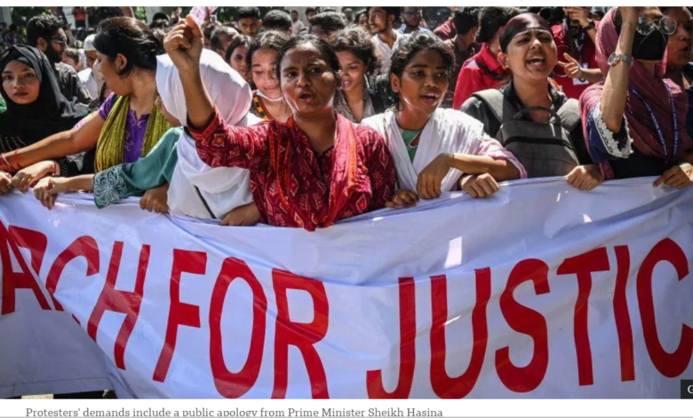 Students have been protesting against attempts to reinstate quotas in civil service jobs for relatives of veterans from the country’s war for independence from Pakistan in 1971 for more than three weeks.