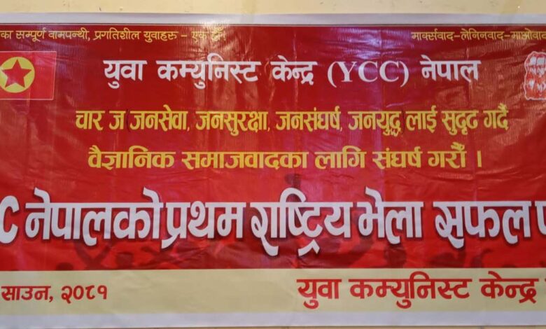 काठमाडौ । महावीर नेतृत्वको नेकपा(माओवादी)को युवा कम्युनिष्ट केन्द्रको प्रथम राष्ट्रिय भेला सम्पन्न भएको छ । प्राप्त जानकारी अनुसार सो भेलाले बैज्ञानिक समाजवादका लागि जनसंघर्ष र वर्गसंघर्षलाई तेज बनाउने लगायतका निणर्य भएको बताईएको छ ।सो भेला ६ नं प्रदेशमा गरिएको बताईएको छ ।