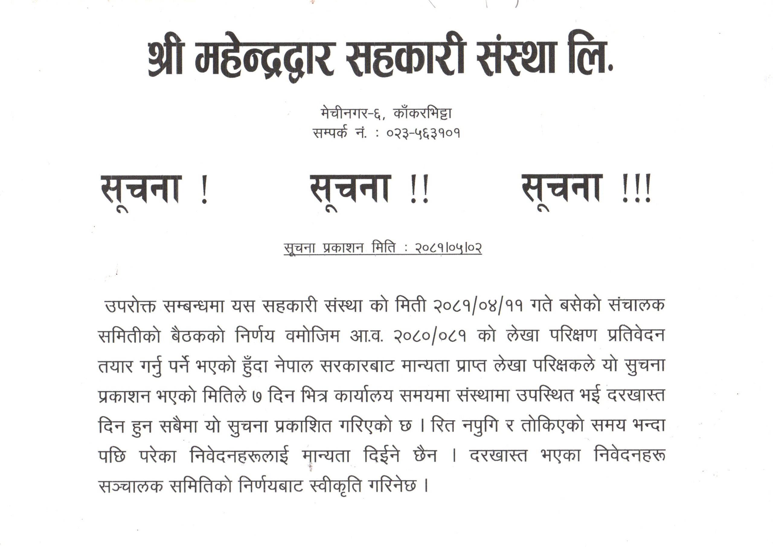 लेखा परिक्षकको आवाश्यकता सम्बन्धि सुचना ।