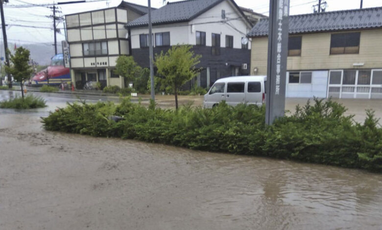 Heavy rain also fell in nearby northern prefectures of Niigata and Yamagata, threatening flooding and other damages, officials said.