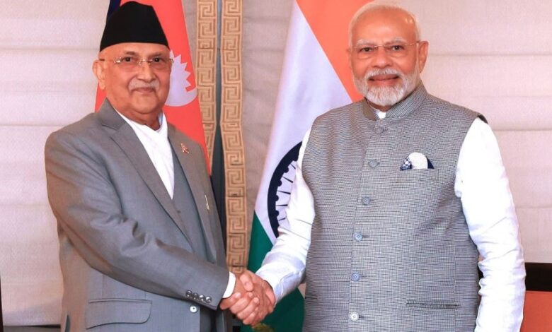 प्रधानमन्त्री केपी शर्मा ओेली र छिमेकी भारतका प्रधानमन्त्री नरेन्द्र मोदीबीच भेटवार्ता गर्नुहुँदै । तस्बिर : दिनेश भण्डारी