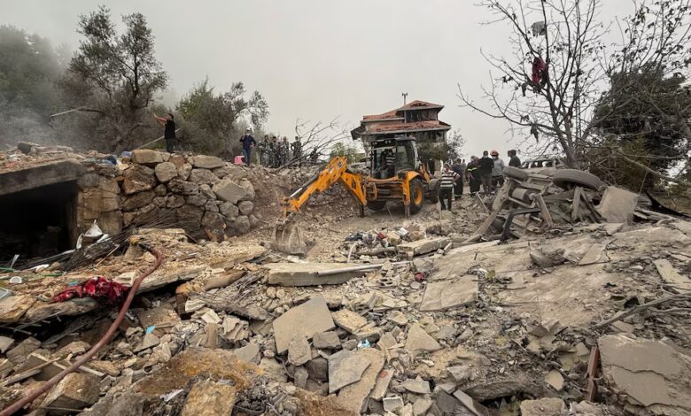 Rescue workers were still pulling bodies out of the rubble in Aitou on Tuesday, local media reported, following one of the deadliest strikes on displaced families in Lebanon, after strikes earlier this month on the southern Lebanese town of Ain Deleb that left more than 30 dead.