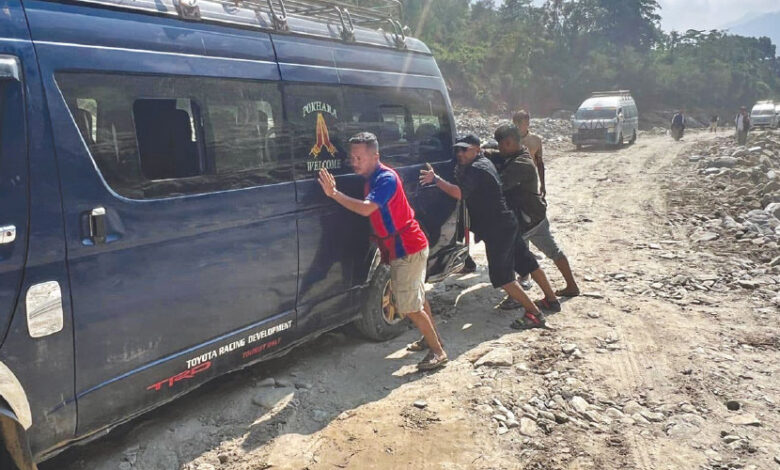 Dal Bahadur Moktan Tamang, the former chairperson of Roshi Rural Municipality, said that there were issues with vehicle operation along the BP Highway affected by floods and landslides.