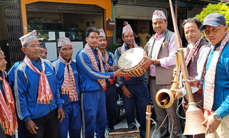 On Monday, in the presence of the rural municipality’s representatives, including its Chairman Raju Prasad Acharya, Vice Chairman Deepak Acharya and Ward-4 Chairman Bharat Bahadur Chhetri, a set of Naumati Baja instruments was jointly handed over to the Lamakhet Naumati Baja Group and the Kajinne Naumati Baja Group at the municipality’s centre in Lamakhet.