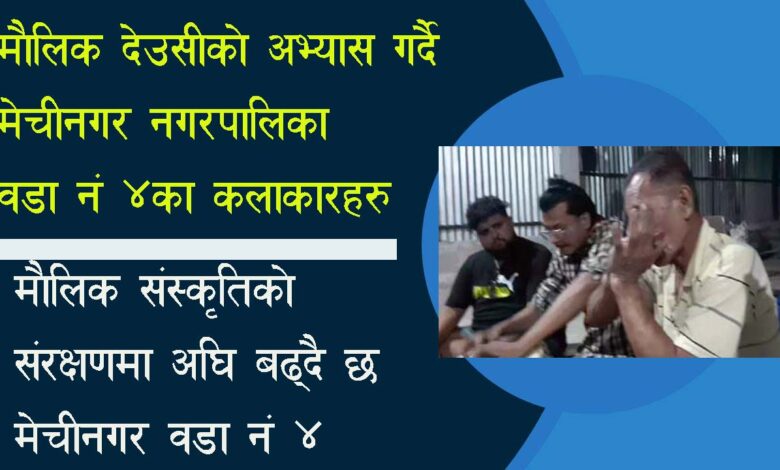 नेपालीहरुको दोस्रो ठूलो चाडको रुपमा रहेको तिहारमा झापाको मेचीनगर नगरपालिका वडा नं ४ले मौलिक देउसी संचालन गर्ने भएको छ । मौलिक देउसी अर्थात नेपाली बाजाको प्रयोगलाई महत्वका साथ देउसीमा प्रयोग गरिने । वडा नं ४को वडा कार्यालयले नै स्थानीय कलाकारहरुलाई हौसला र प्रोत्साहन गर्दै केही समय यतादेखि मौलिकबाजाहरुको प्रशिक्षण समेत संचालन गर्दै आएको छ ।