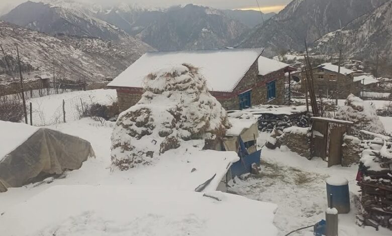 Snowfall started late Sunday night and by Monday afternoon Simkot, the district headquarters, had accumulated three inches of snow. In higher-altitude areas like Limi in the northern Namkha Rural Municipality, the snow depth reached one foot.