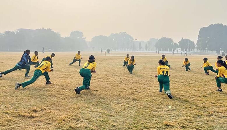 हक्की खेलको अभ्यास गर्दै किशोरी खेलाडी । तस्बिर : विजयकुमार साह