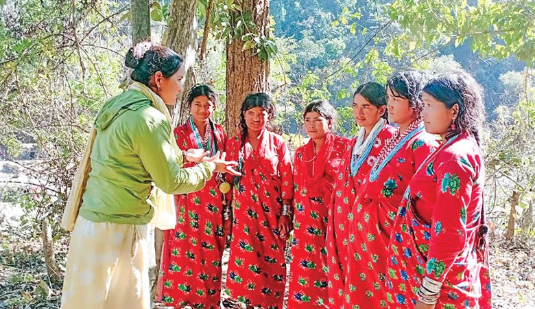 राउटे किशोरीलाई स्वास्थ्यसम्बन्धी जानकारी दिँदै अनमी अन्जु पन्त ।