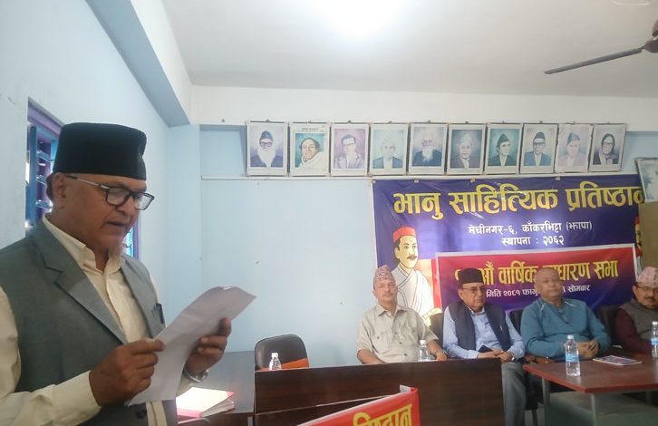 भानु साहित्यिक प्रतिष्ठानका अध्यक्ष डिल्लीराम घिमिरेको अध्यक्षतामा सम्पन्न साधारण सभाको स्वागत उपाध्यक्ष मेदनीप्रसाद खरेलले र सञ्चालन महासचिव शुशिल आचार्यले गरेका थिए ।