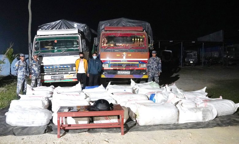 झापा–सशस्त्र प्रहरी बलले एक हजार ६३६ किलो गाँजासहित झापाबाट दुईजनालाई पक्राउ गरेको छ । प्रहरीले सो परिमाणको गाँजासहित बुद्धशान्ति गाउँपालिका–४ मेची राजमार्गबाट दुई ट्रकसहित दुवैजनालाई नियन्त्रणमा लिएको हो ।