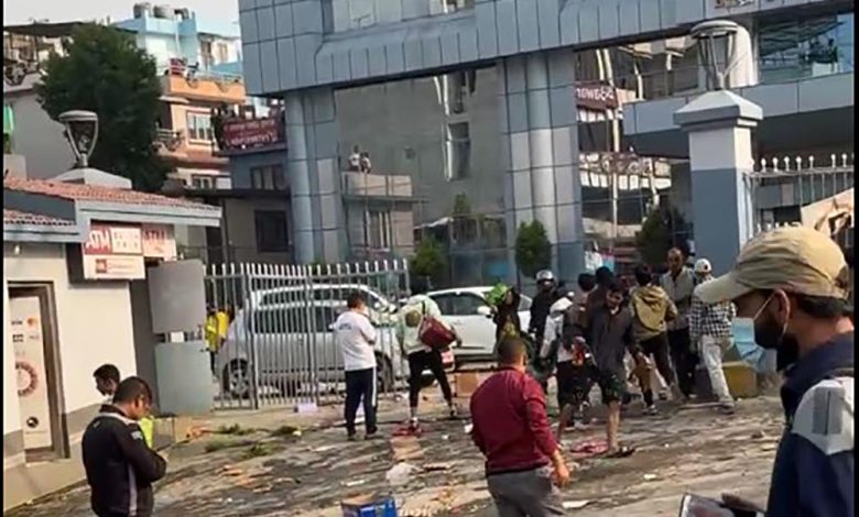 कोटेश्वर भाटभटेनीमा लुटपाट गर्दै प्रदर्शनकारी ।