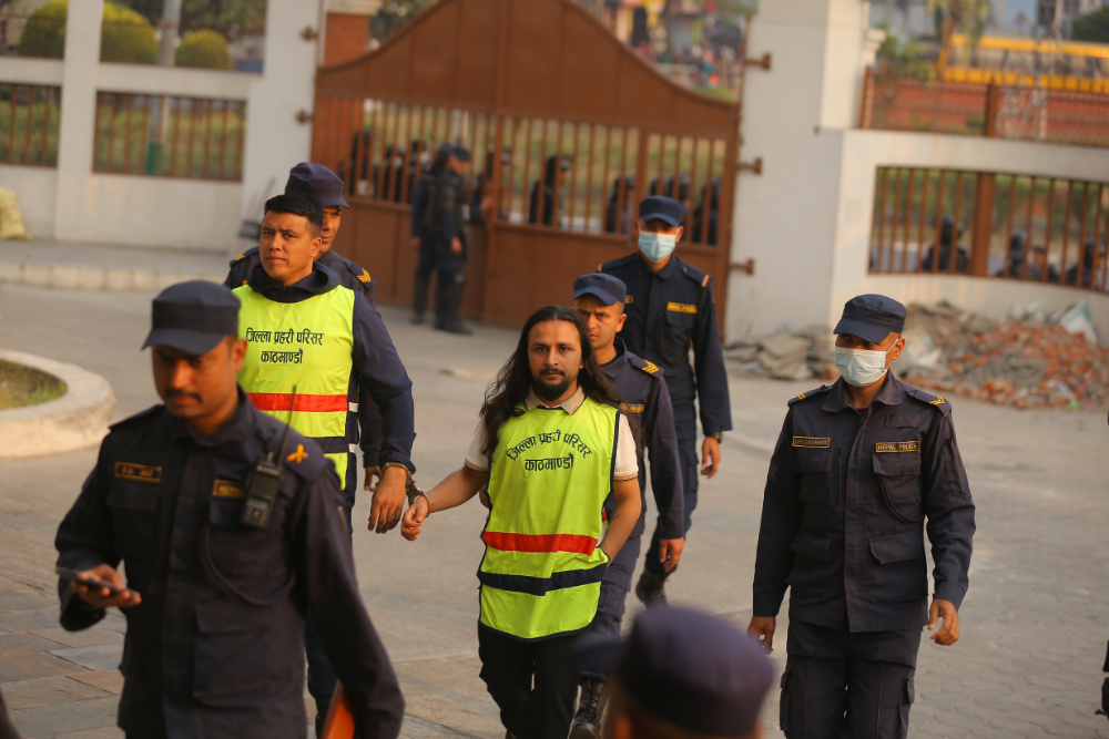 आइतबार म्याद थप गर्नका लागि काठमाडौँ जिल्ला अदालतमा उपस्थित गराइएको हो। चैत्र १५ गते तीनकुनेमा आन्दोलनकारीहरूलाई उक्साएर घटना गराएको आरोपमा पक्राउ गरी म्याद थप गर्नका लागि अदालतमा लगिएको हो।