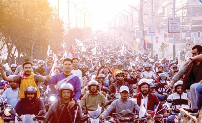 काठमाडौं तीनकुनेमा एमालेले निकालेको र्याली । तस्वीर: अनिल आङदेम्बे