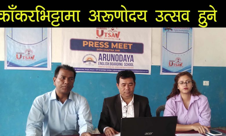 झापाको काँकरभिट्टा स्थित अरुणोदय ईङ्लिस बोर्डिङ् स्कुलले अरणोदय उत्सव गर्ने भएको छ । उत्सवका बारेमा आयोजित पत्रकार भेटघाटमा बिध्यालय ब्यवस्थापन समितिका अध्यक्ष भगिरथ राई र प्रिन्सिपल दुर्गाबहादुर लुइटेलले जानकारी गराएका थिए । अरुणोदय उत्सव चैतको २६ र २७ गते दुई दिन हुने भएको छ । बिध्यालयको वार्षिक कार्यक्रम अन्तरगत यस वर्ष विविध कार्यक्रमलाई समेटेर उत्सव गर्न लागिएको जानकारी अध्यक्ष राईले बताए ।