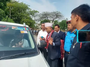 मेचीनगर । कोशी प्रदेश सरकारले नेपालको पूर्वीद्वार काँकरभिट्टा सीमा नाकामा पर्यटकीय सवारी साधनमा स्टिकर टाँस्ने अभियान सुरु गरेको छ । आइतबार काँकरभिट्टा नाकाबाट कोशी प्रदेश सरकारका आन्तरिक मामिला तथा कानूनमन्त्री रेवतीरमण भण्डारीले अभियानको शुभारम्भ गरे । उनले भारतीय नम्बर प्लेट डब्लु बि ७४ ए ०६६३४ को सवारी साधनमा स्टिकर टासेर शुभारम्भ गरेका हुन् । मन्त्री भण्डारीले सो सवारी साधनमा सवार भारतीय पर्यटकहरुलाई रुद्राक्षको माला र खादा पहिर्याएर स्वागत समेत गरे ।