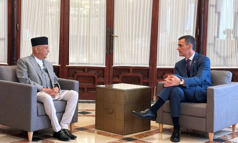 प्रधानमन्त्री ओलीले समकक्षी साञ्चेजलाई नेपालको औपचारिक भ्रमणको निमन्त्रणा दिँदै नेपालका स्पेनको दूतावास खोल्न आग्रह गर्नुभएको थियो । स्पेनका प्रधानमन्त्री साञ्चेजले राष्ट्रसङ्घको शान्ति मिसनमा नेपालले खेल्दै आएको भूमिकाप्रति प्रशंसा गर्नुभयो ।