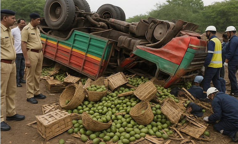 प्रहरीले लरी पल्टिएपछि आँपका टोकरीहरू मजदुरहरू माथि परेका कारण केहीको निधन भएको र केही कामदार घाइते भएको जनाएको छ ।