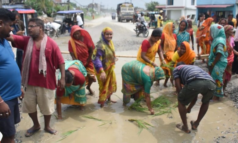 मोरङ- समयमा सडक निर्माण नगरेको र वर्षामा हिंड्नै नहुने गरी खाल्डाहरु भएको भन्दै मोरङको कटहरी गाँउपालिकाका स्थानीयहरुले सडकमा धान रोपेर सांकेतिक विरोध गरेका छन् ।