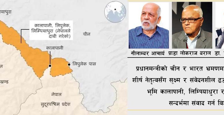 प्रधानमन्त्री केपी शर्मा ओलीको चीन र भारत भ्रमणमा दुवै देशका शीर्ष नेतृत्वसँग सूक्ष्म र संवेदनशील ढङ्गले नेपाली भूमि कालापानी, लिम्पियाधुरा र लिपुलेकका सन्दर्भमा संवाद गर्न विज्ञको सुझाव छ । पूर्वराजदूत प्राडा लोकराज बराल र पूर्वमन्त्री एवं पूर्वराजदूत नीलाम्बर आचार्यले चीन र भारतले नेपाली भूमिका सन्दर्भमा गरेका सम्झौताबारे कूटनीतिक संवादबाट समाधान खोज्नुपर्ने बताउनुभयो ।