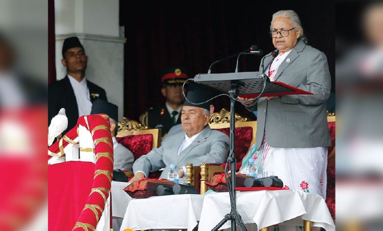 शासकीय शैलीप्रति जनताका असङ्ख्य गुनासा, आव्रmोश र असन्तुष्टि छन् । यी असन्तुष्टिलाई एकैचोटि सम्बोधन गर्न कठिन भए तापनि वर्तमान सरकारले आफ्नो स्रोतसाधन र क्षमताले भ्याएसम्म ती समस्याको समाधान गर्न इमानदार प्रयास गर्ने छ । संविधान दिवसको यस अवसरमा म सबैलाई वर्तमान सरकार नागरिकप्रति पूर्ण जवाफदेही रहने प्रतिबद्धता व्यक्त गर्दै नागरिक पनि आफ्ना कर्तव्यप्रति सचेत रहनुहुने छ भन्ने विश्वास व्यक्त गर्दछु ।