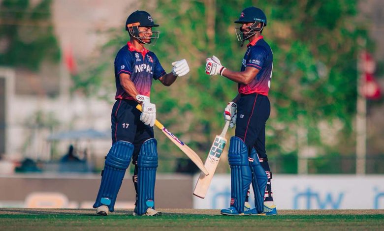 Batting first after winning the toss at the Dubai Academy, captain Paudel scored 109 runs, opener Ashif Sheikh added 35 runs, Arif Sheikh made 27 runs, and Dipendra Singh Airi made 23 runs. Karan KC scored 13 runs to contribute to the total, while the other batsmen could not add significant runs