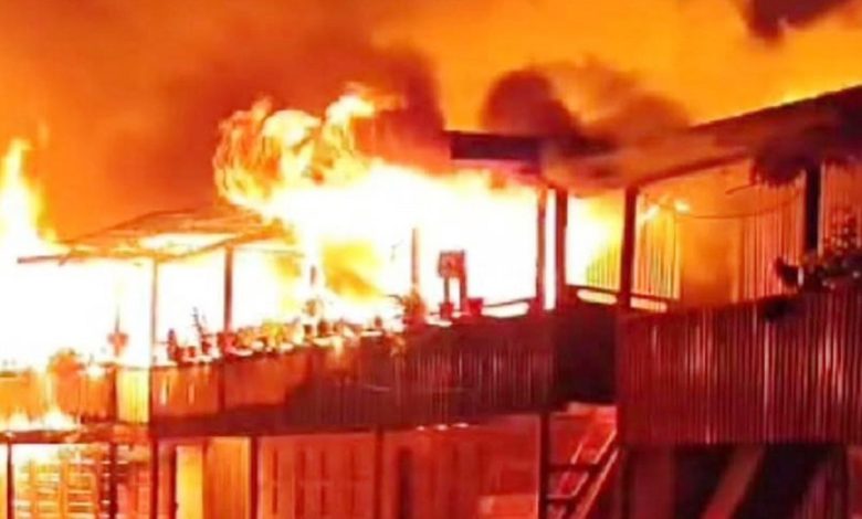 साँवाको तेम्बा बजारमा भएको आगलागीको दृश्य । तस्बिर सौजन्य : विजय साँवा
