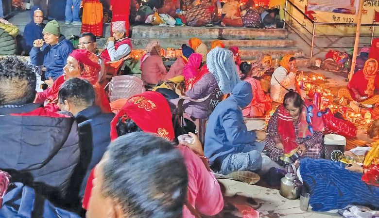 On the occasion of Mangsir Krishna Chaturdashi, relatives visited holy sites and performed the ritual of scattering satbij in memory of their departed ancestors.