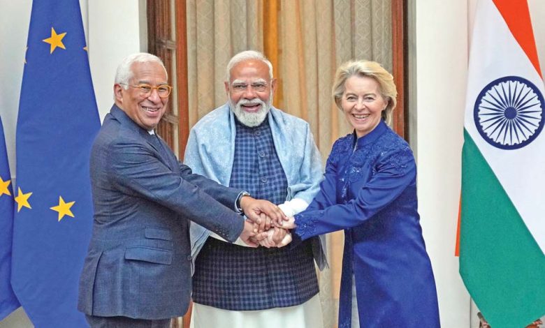 युरोपेली आयोगका अध्यक्ष उर्सुला भोन डेर लेयन र युरोपेली परिषद्का अध्यक्ष एन्टोनियो कोस्टाले मङ्गलबार बिहान भारतका प्रधानमन्त्री नरेन्द्र मोदीसँग भेटवार्ता गर्नुभएको हो । प्रधानमन्त्री मोदीले सम्पन्न भएको यो सम्झौताले विश्वका दुई प्रमुख अर्थतन्त्र अमेरिका र चीनबाट सिर्जित चुनौतीको सामना गर्न भारत र इयु दुवैलाई सहयोग पुग्ने विश्वास व्यक्त गर्नुभएको छ ।