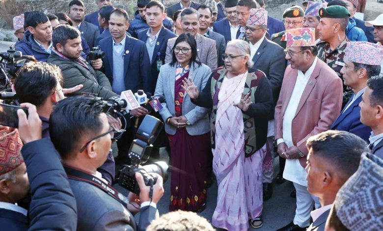 प्रधानमन्त्री सुशीला कार्की भक्तपुरस्थित जनक शिक्षा सामग्री केन्द्र लिमिटेडमा मतपत्र छपाइको अनुगमनका क्रममा निर्वाचनबारे सञ्चारकर्मीलाई जानकारी गराउनुहुँदै ।