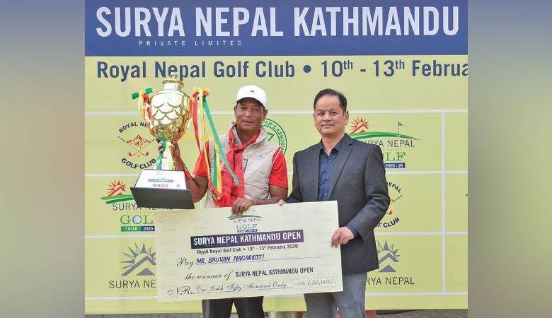 By A Staff Reporter,Kathmandu, Feb. 14: Bhuvan Nagarkoti won the title of Surya Nepal Kathmandu Open, fourth event under the Surya Nepal Golf Tour 2025-26, at the par-68 Royal Nepal Golf Club on Friday.