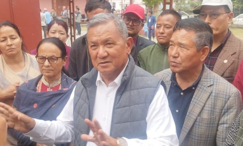 सञ्चारकर्मीसँग प्रतिक्रिया दिँदै एमालेका उपाध्यक्ष पृथ्वी सुब्बा गुरुङ । तस्बिरः नवीनराज कुइँकेल