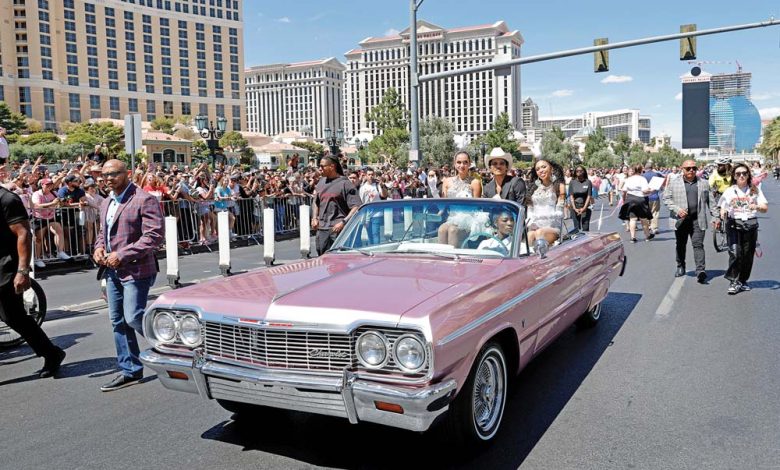 Las Ve Gas, Apr. 12: Riding down the Las Vegas Strip in a pink low-rider with two showgirls at his side, Bruno Mars was declared the “new king of Las Vegas” on Friday.
