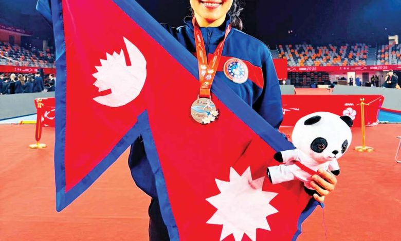Nepal’s most decorated karateka found no answers against the six‑time Karate One gold medallist at the Leshan Olympic Sports Centre tatami.