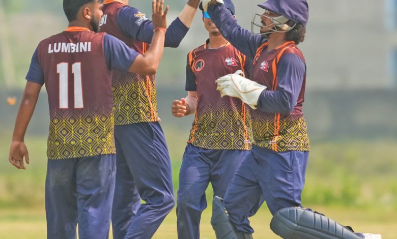Earlier, batting first, Lumbini were dismissed for 233 in 45.2 overs. Aakash Tripathi top‑scored with a run‑a‑ball 72, hitting nine fours and a six.