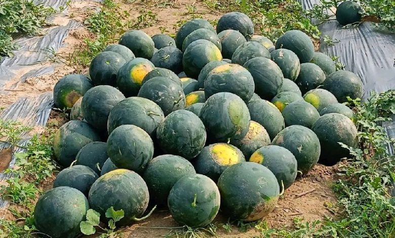 चोरी हुन थालेपछि नपाक्दै बजार पठाउन कृषकले टिपेका तरबुजा । तस्बिर : राधाकृष्ण डुम्रे
