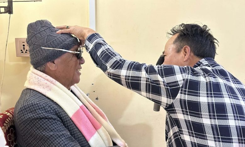 डिचेन डोङ्गला स्मारक आँखा उपचार केन्द्रमा आँखा जाँच गर्नुहुँदै कोशी प्रदेशका पूर्व मन्त्री प्रताप प्रकाश हाङ्गाम । तस्बिर : साहारा लिम्बू